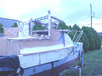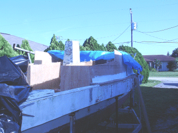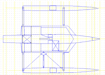 A design change was also mmade. It was decided to move the OR’s forward about 17″ and have the rear CA pivot pin on the transom. It was also decided to leave the rear cabin in place. This was not really to have the extra berth but for more dry storage. This only leaves a 28″ seating area but for singlehanding no problem