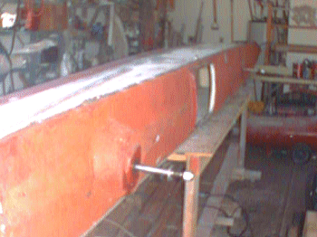 The OR are moved inside and the trim, hatches and decks removed so the CA pivot pins can be removed. We have a lot of sections of the molded channel for the 3 1/2″ tubes left over from the 6.09 and these will be used to mount the OR Tube ends. New ones will be built using a 7 degree dihedral for the main hull.