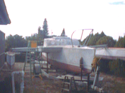 The hull was shortened by 3 ft and a pair of 6.47 swing wings and outriggers and the sail plan and rigging were put on it. It got sailing about the time we started the excursion boat and was sold to a fellow in PA that wintered in FL. He sailed it for several years and made some changes I don’t like and then sold it to my friend when he bought a more convention 28 ft Trimaran.
